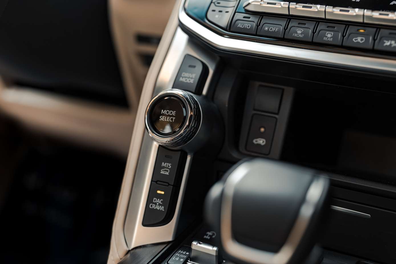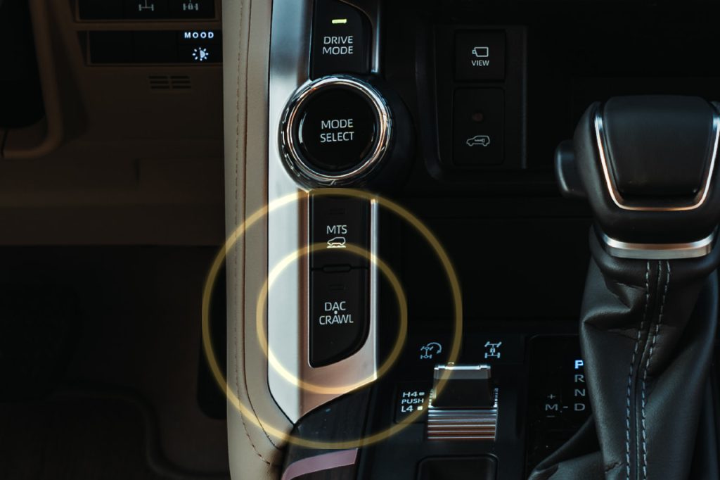 يتيح لك نظام التحكم بالزحف التحكم بدواسة الوقود والفرامل وبالتالي الحفاظ على السرعة المنخفضة لضمان القيادة الأمنة والقوية على الرمال والتراب والصخور والثلوج والوحول والمنحدرات أو الأسطح الأخرى التي تتطلب منك تحكماً دقيقاً في دواسة الوقود.