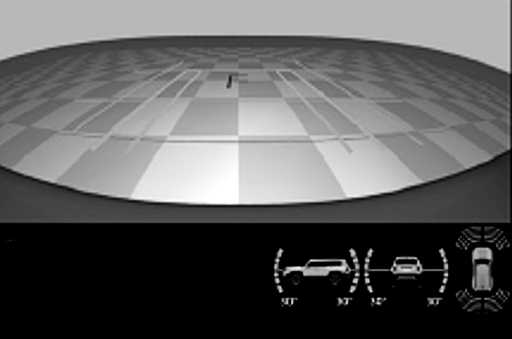 With the touch of a button, you can check the conditions under the car and the positions of the front wheels. A close-up view of the area around the rear wheels is also available. This allows the driver to see the surrounding conditions and the distance to obstacles.